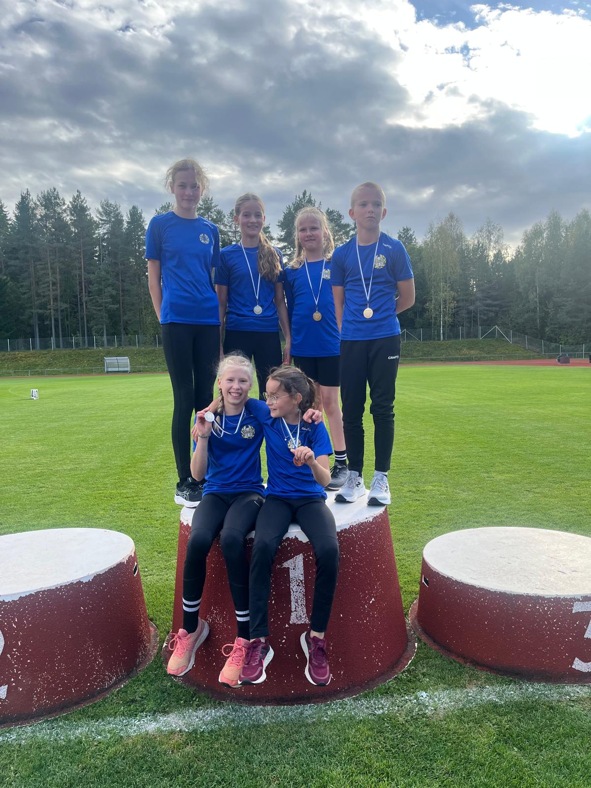 Olivia Hietamäen (9v) mainio yleisurheilukesä huipentui nyt neliottelun kultaan ja jokaisessa lajisuorituksessa (40m, korkeus, keihäs ja 800m) tehtyihin omiin ennätyksiin! Lajivoitto hänelle tuli 40m ajalla 6,84. Hilda Turja (10v) kirkasti viime syksyisen hopean kullaksi ja korkeushyppyä lukuun ottamatta paranteli omia ennätyksiään 60m aidoissa, keihäässä ja 800metrillä. Ellen Piispasen (10v)upea korkeustulos (130cm) ja taistelu 800m matkalla (2.57,99) siivittivät hänet pronssimitalille. Topias Keltikangas (10v) on hallinnut ikäsarjansa otteluita jo kaksi vuotta ja otti jälleen piirinmestaruuden tasaisen varmalla tekemisellä parantaen samalla omia ennätyksiään lähes kaikissa lajeissa. 12-13v sarjoissa oteltiin viisiottelut, jossa em. lajien lisäksi hypättiin pituutta. Oona Hietamäki (12v) suoritti ensimmäisen ottelunsa ja kilpaili myös useassa lajissa ensimmäistä kertaa. Hän ei jäänyt harmittelemaan pituuden kolmen yliastutun nollatulosta, vaan hyppäsi korkeudessa ikäryhmänsä toiseksi parhaat lukemat 142cm ja juoksi 800m joukon kolmanneksi ajalla 2.51,86. Linnea Piispanen (13v) on jo kokenut ottelija ja nyt tasaisen hyvä suorittaminen sekä omat ennätykset keihäässä ja 800 m nostivat hänet upeasti hopealle. Onnittelut kaikille!